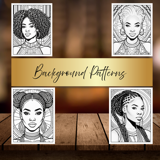 Abstract Queens: Black Women Coloring Book with Geometric Designs | Melanin Art Coloring Pages for Adults | Digital Download