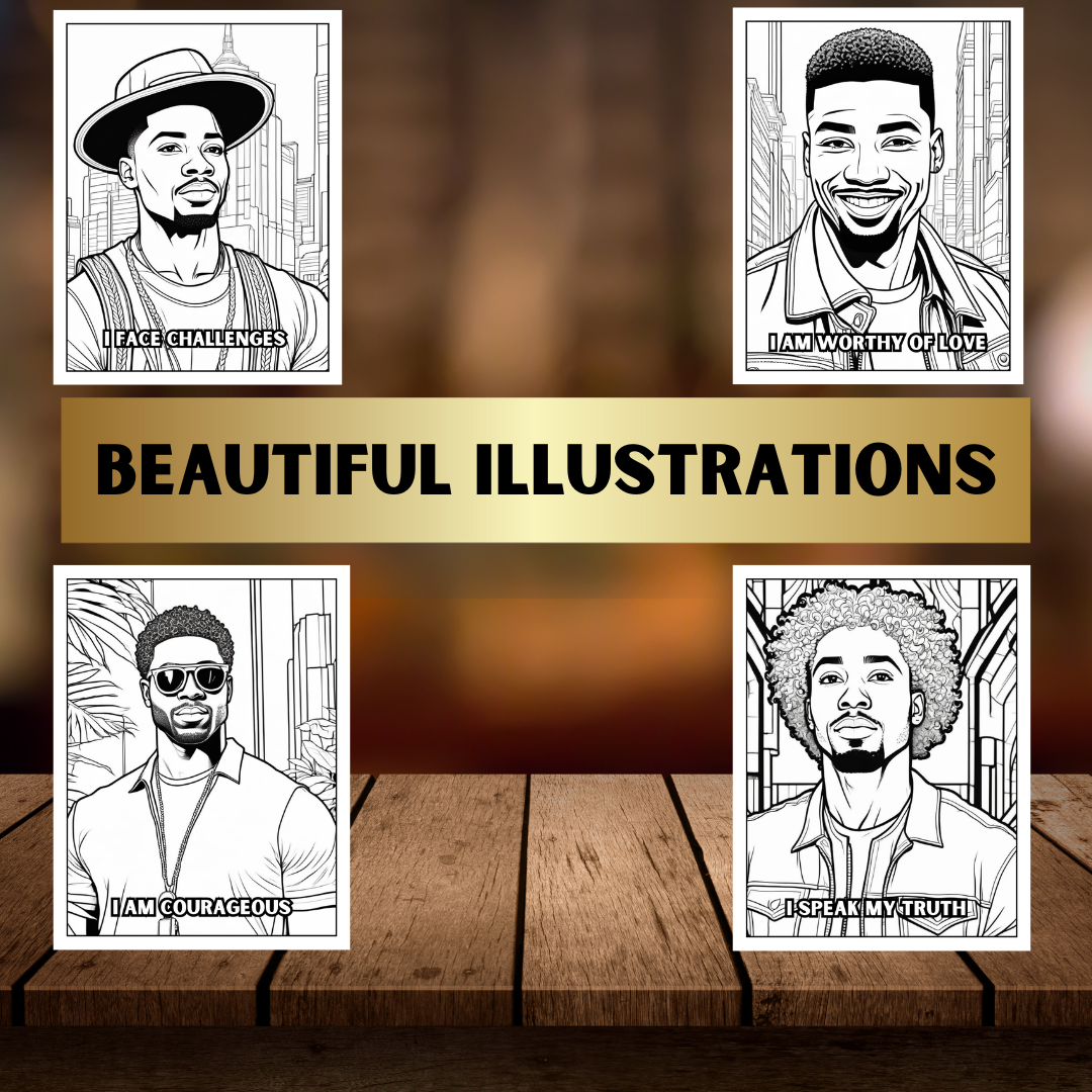 Empower your mind and relax with this affirmation coloring book designed for Black men. Filled with powerful, uplifting quotes, this book encourages confidence, self-love, and motivation. Each page features bold, easy-to-color designs alongside positive affirmations to inspire self-care, mental clarity, and inner strength.
