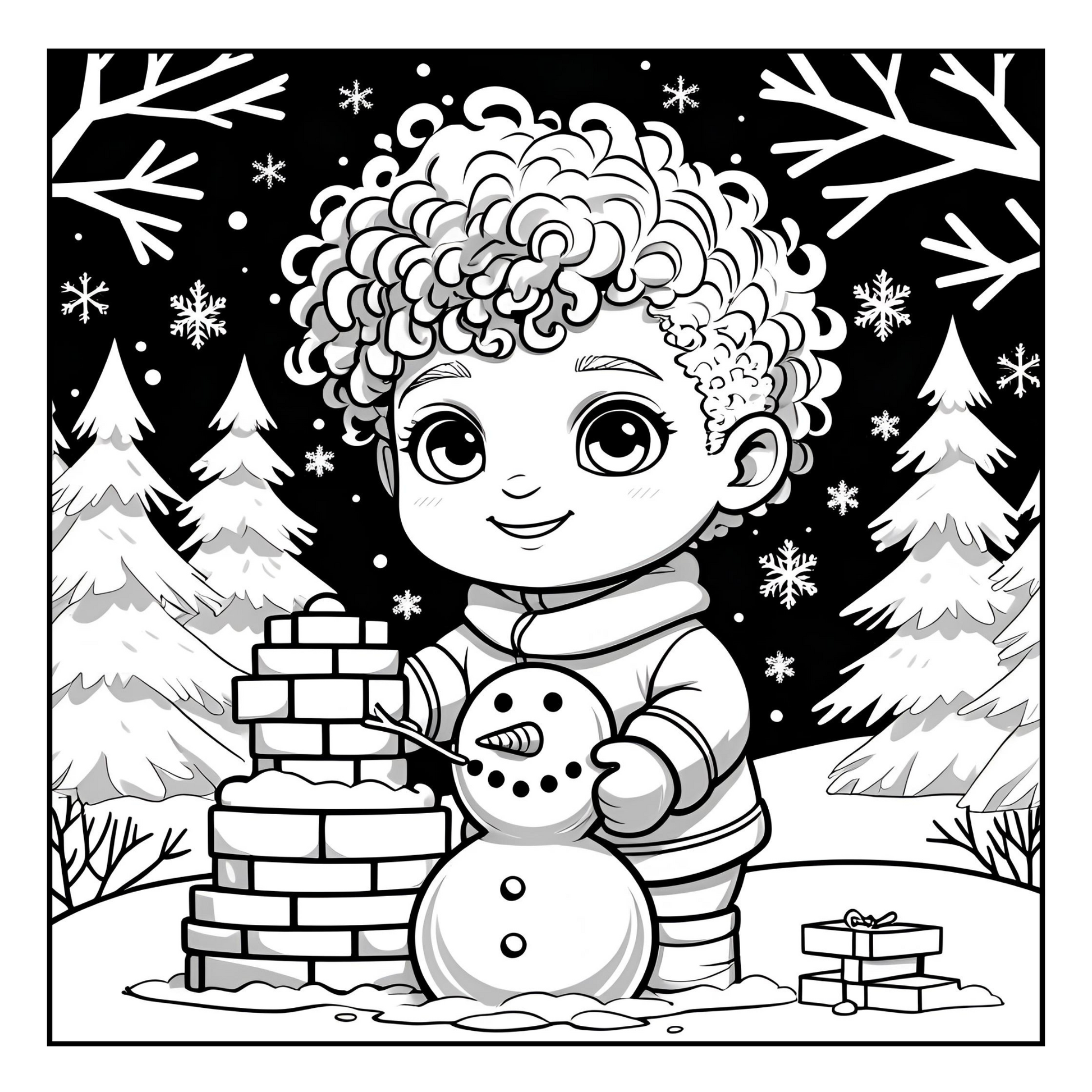 Get ready for an action-packed, snowy adventure with Little Snow Kings! This festive coloring book features delightful illustrations of chibi boys enjoying the best parts of winter — from epic snowball fights and building snow forts to decorating Christmas cookies, making snow angels, and sipping cocoa by the fire.